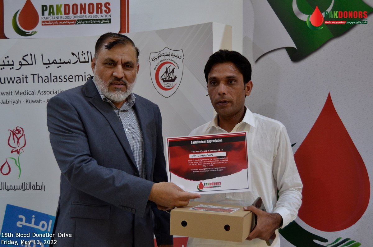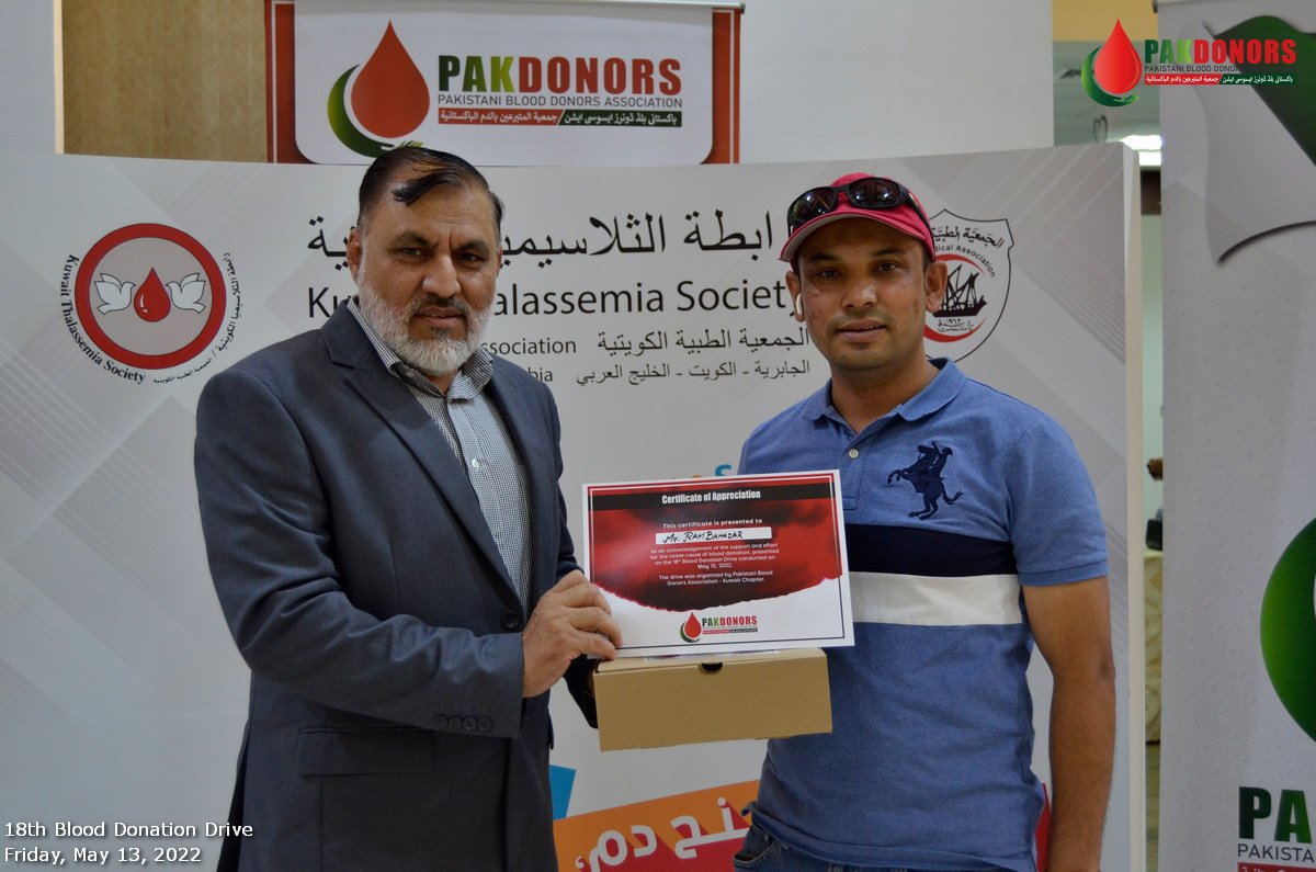 Pakistani Blood Donors Association (PAK Donors) has been serving humanity since 2011 in the State of Kuwait. They have played a key vital role to promote awareness about the importance of BLOOD DONATION.